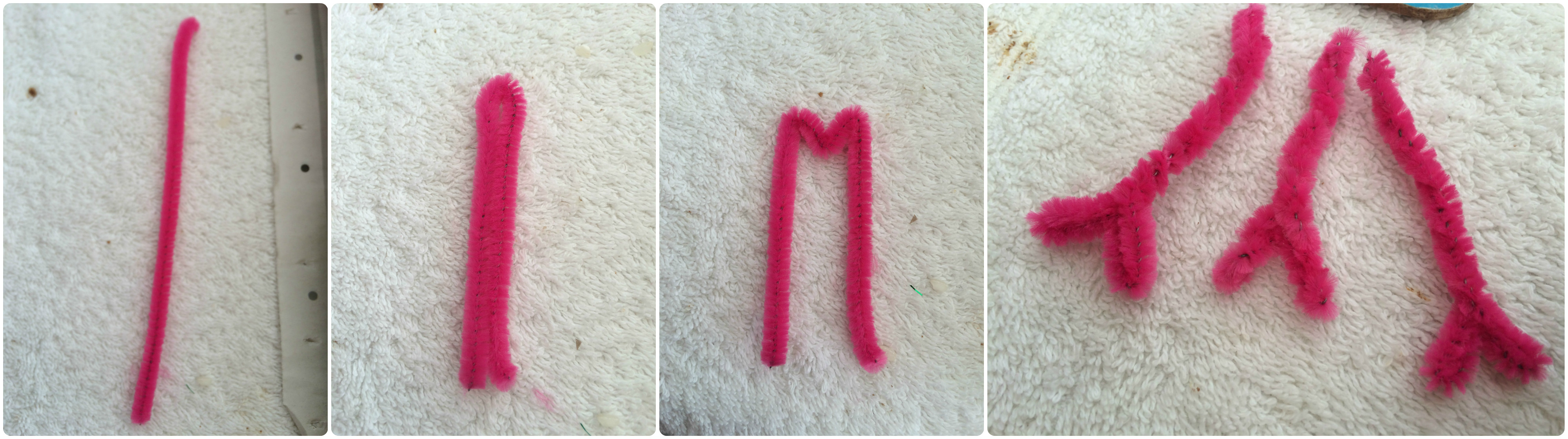All I did was cut my pipe cleaner in half (as it was quite long) then folded the pipe cleaner in half, then make an ‘M’ shape which would become the fork of the snake’s tongue, then pinch the whole thing together and twist! Tah-Dah – a snake’s tongue!