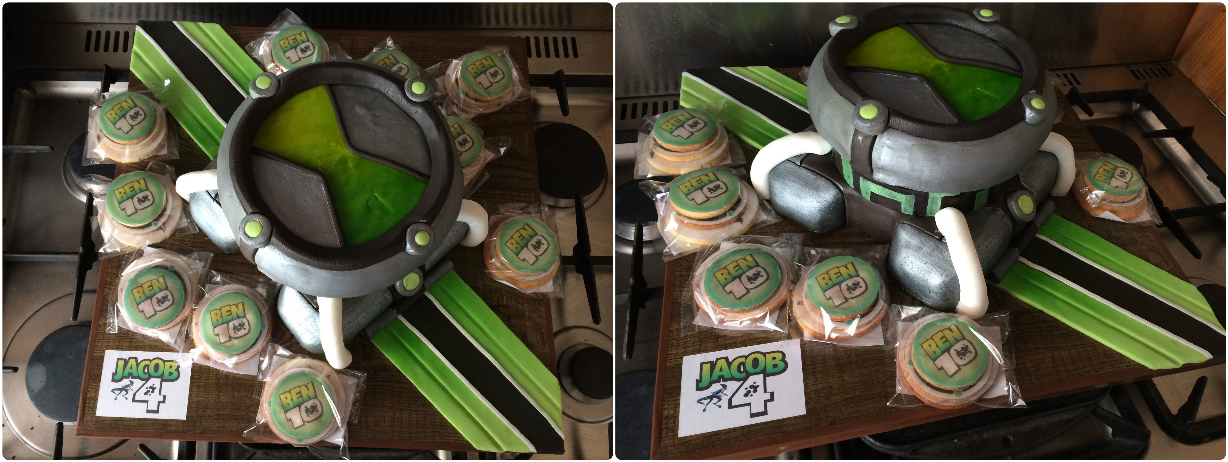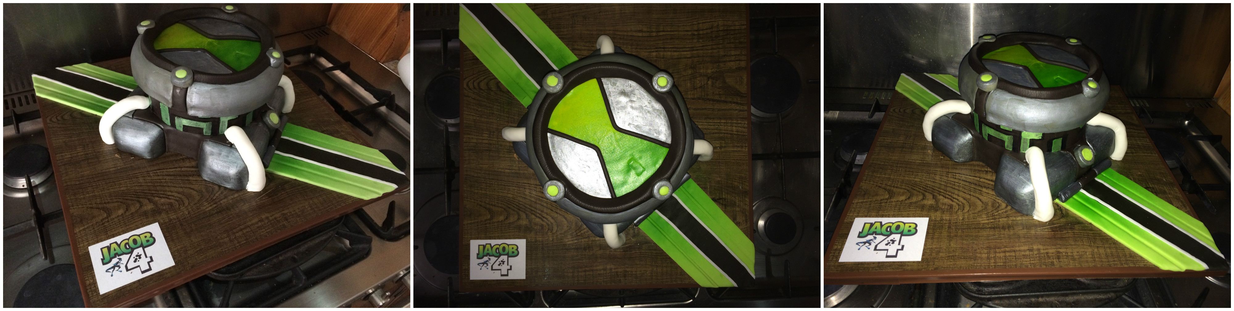 A week or so back my Blue One turned four (I feel so emotional about this…) and he is a massive Ben Ten fan – knows the aliens, loves all the different series (when Ben is 10 or when he is 15) so it was only fitting that he should have an Omnitrix birthday cake!