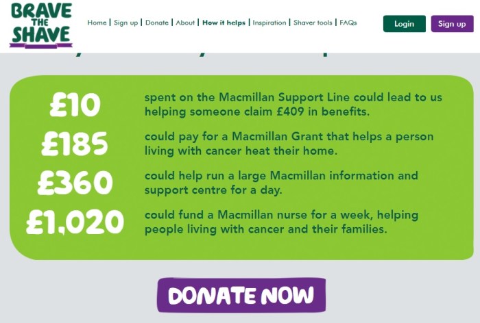It’s Macmillan’s ‘thing’ to ‘Brave the Shave’ – because a lot of people who battle cancer and have chemotherapy lose their hair. These were my first thoughts when I saw their ‘Brave the Shave’ – I’ve already run to raise money, I’ve done the Coffee Mornings – but this could really make a difference and that it will affect me for more than one day. When I’ve run – the next day I am fine – the run is done and that’s it. With shaving my hair – I will have a tiny glimpse into what it’s like for a cancer sufferer every day. I’m not saying I will know what it’s like to have cancer but just for a short while, I will be able to identify with that side effect of cancer treatment. It will take me out of my comfort zone. It’s not the nice thing to do because to put it simply, cancer is not nice.