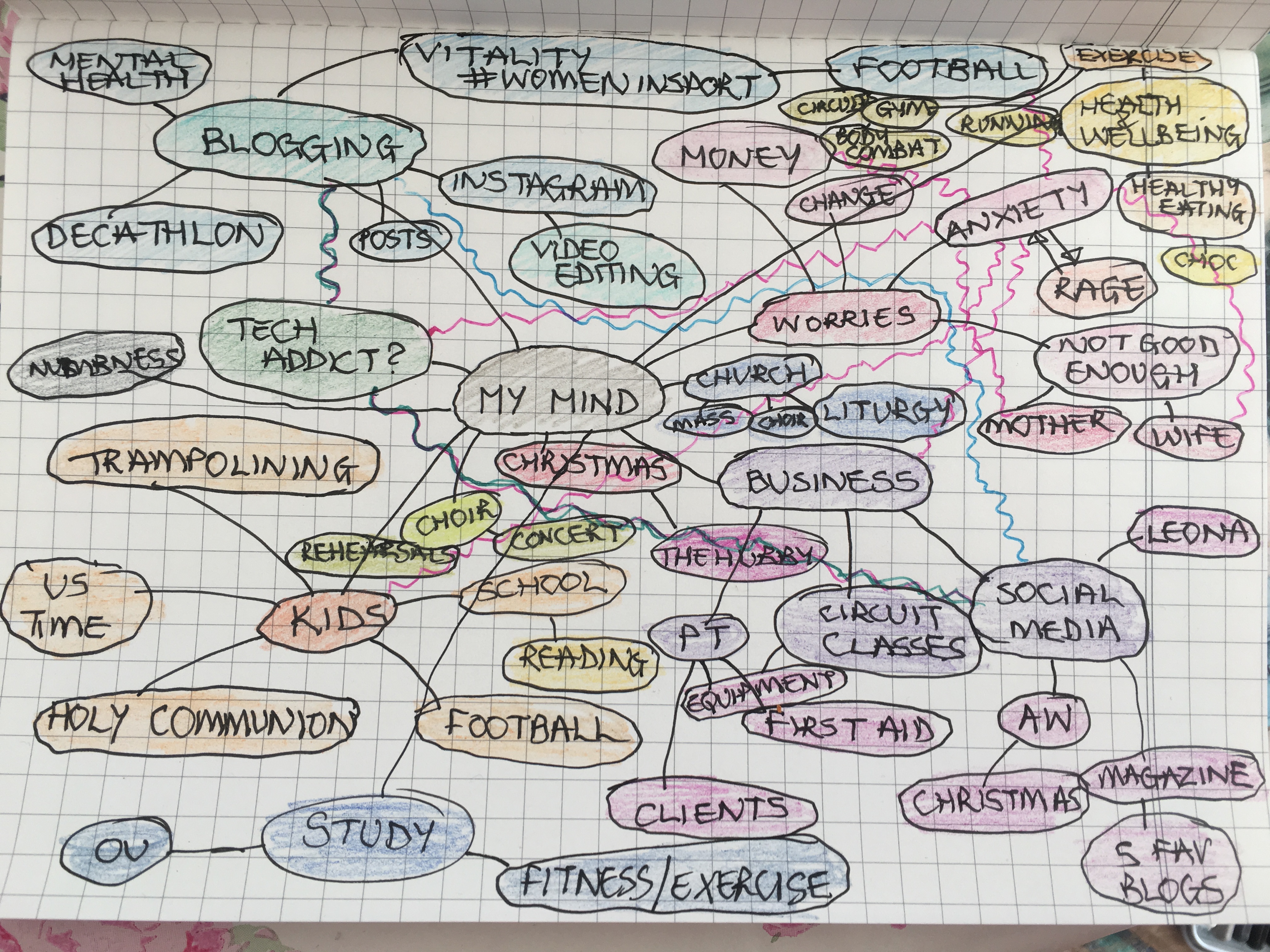 I have to use humour sometimes, it keeps me going just about, and wouldn’t it be so amazing if that’s how anxiety worked if you could just restart your brain? But, unfortunately, it doesn’t. So this time I’ve tried creating a Mind Map of some of the thoughts currently racing through my brain – I haven’t written all of them down, I ran out of room, but getting some of them on to the paper I am hoping I will be able to start managing them, and my own expectations!