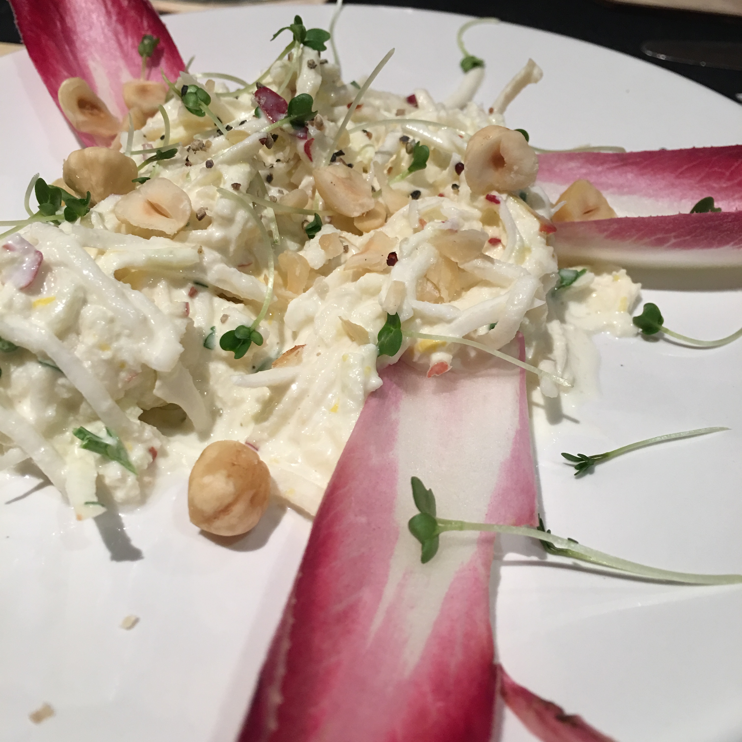 Starter: Celeriac and Apple Remoulade with Hazelnut and Cress
