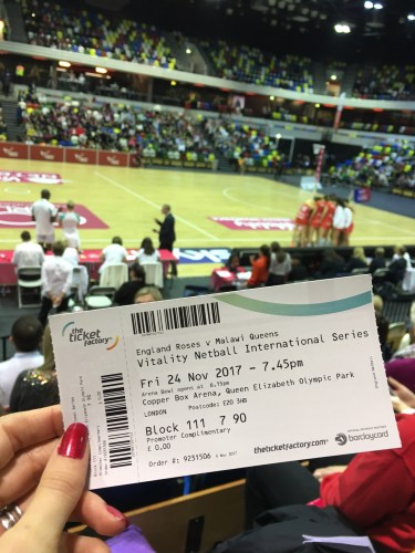 Watching the game on the Friday night, in the wonderful company of Tess, Laura and Lauren, was the first time I’d ever seen a proper netball game and I’ve never witnessed something so fast-paced and compelling I was soon sucked in by the excitement. Seeing the England Roses against the Malawi Queens was phenomenal.